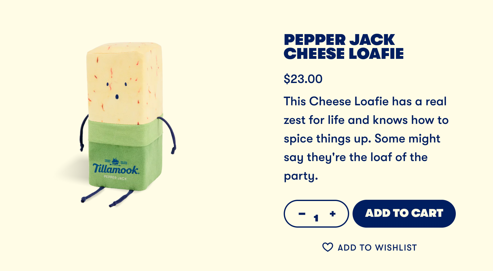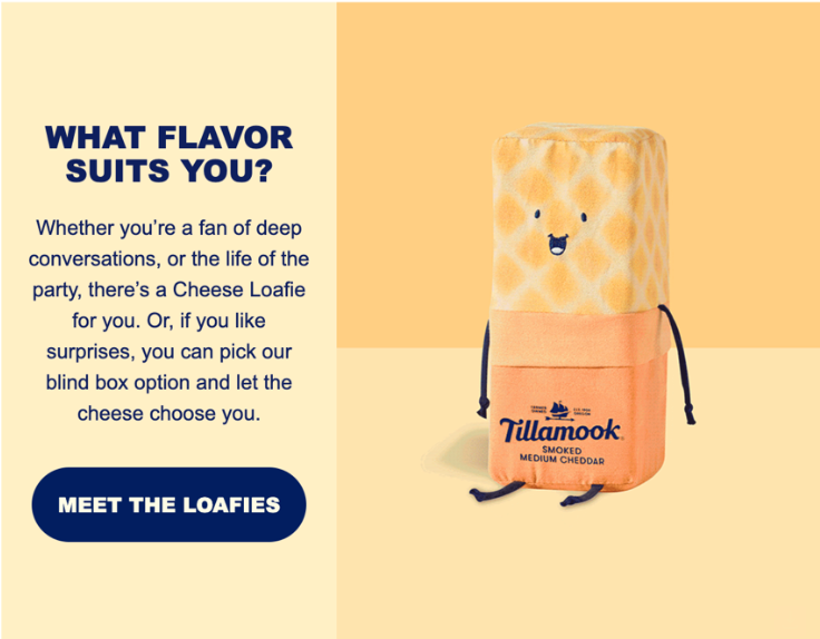 On the Tillamook Shop, each Loafie is accompanied by a winky description that plays into their flavor profile. We even included a blind box option for those who want to be surprised.